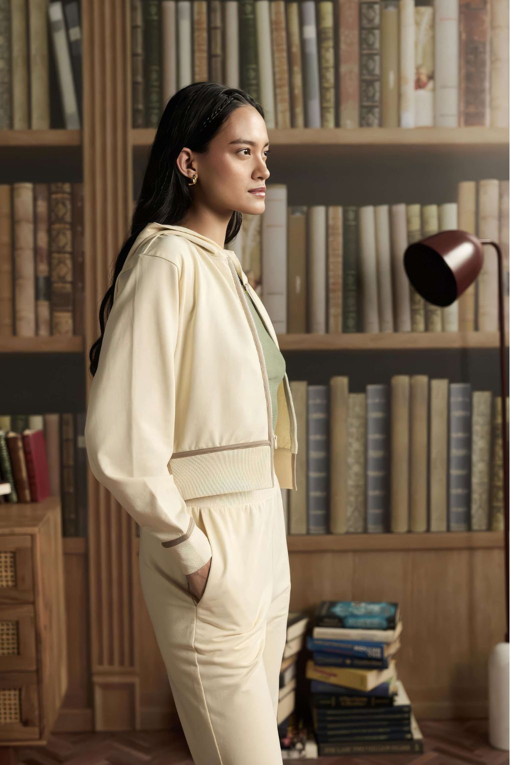Effortlessly cool and ultra-comfy, this two-piece co-ord set blends sporty style with everyday ease. Featuring a cropped zip-up hoodie with contrast piping and matching high-waisted joggers, the set is crafted from soft, breathable fabric perfect for lounging, errands, or casual outings. Whether worn together or styled separately, this set brings elevated comfort to your off-duty wardrobe.