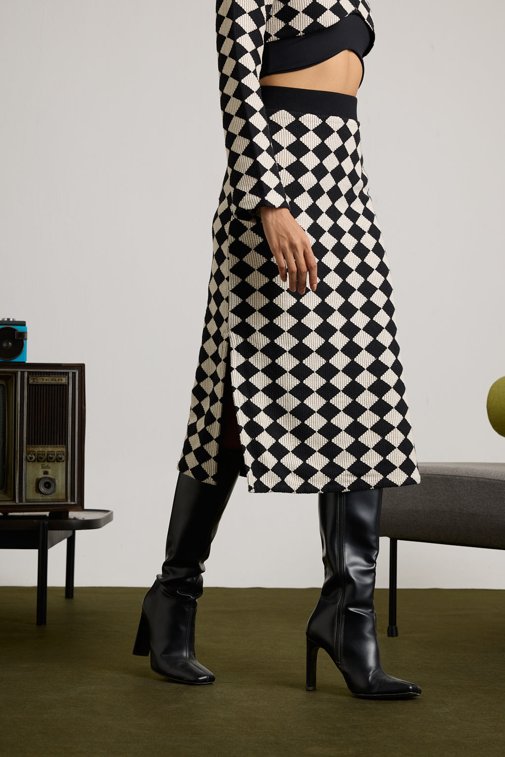 - Fit: Fitted skirt.