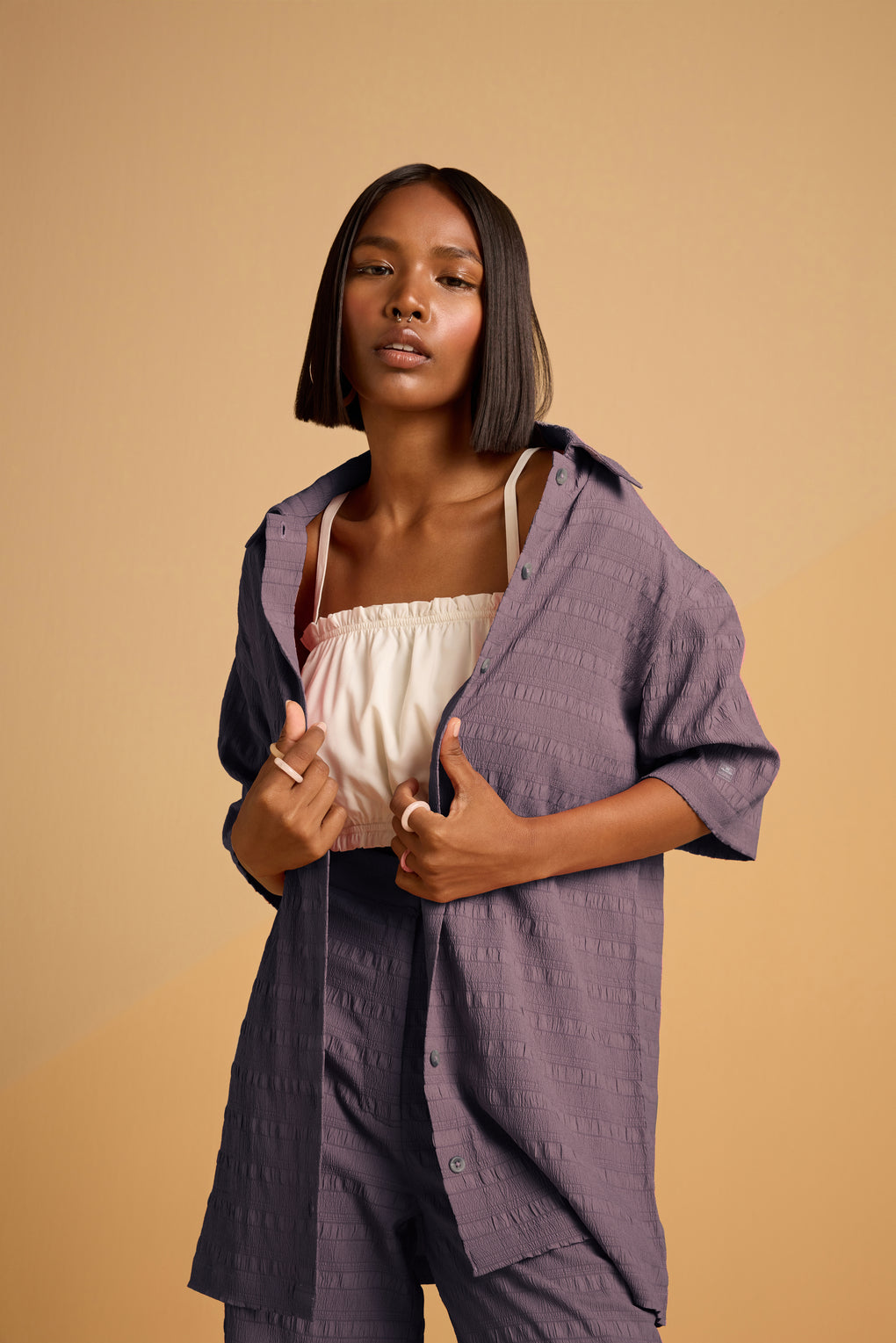 Elevate your summer style with our Riviera Rave Shirt, a timeless addition that promises both style and confidence. Crafted from classic seersucker fabric, this shirt is renowned for its distinctive puckered appearance and textured feel, adding an element of sophistication to your warm-weather wardrobe. This shirt ensures a perfect fit for everyone, making it essential for any fashion-forward ensemble.