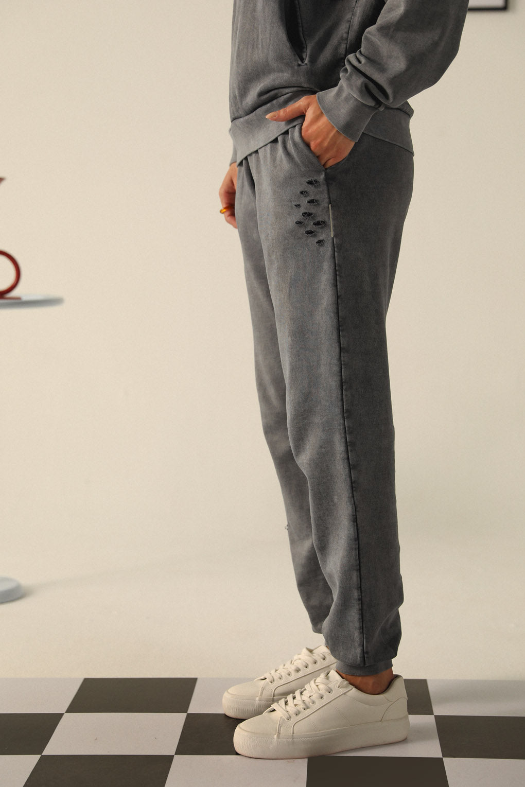 Elevate your casual wardrobe with our Acid Drift Jogger, designed for those who value both style and comfort. Crafted from soft, breathable fabric, these joggers feature a unique acid-wash finish that creates a trendy, lived-in look, while the ripped detailing adds an edgy touch to your ensemble. The jogger style ensures a relaxed fit with elasticated cuffs and a comfortable waistband, making them perfect for lounging at home or running errands in style. Pair them with a cozy hoodie or a graphic tee for a chic, effortless outfit that stands out.