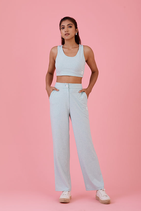 Made in soft Melange jersey fabric, pick these pants to elavate your wardrobe essentials. These regular fit bottoms with elasticated waist paired with jersey crop tank allows optimum comfort and is easy to take set from couch to coffee.