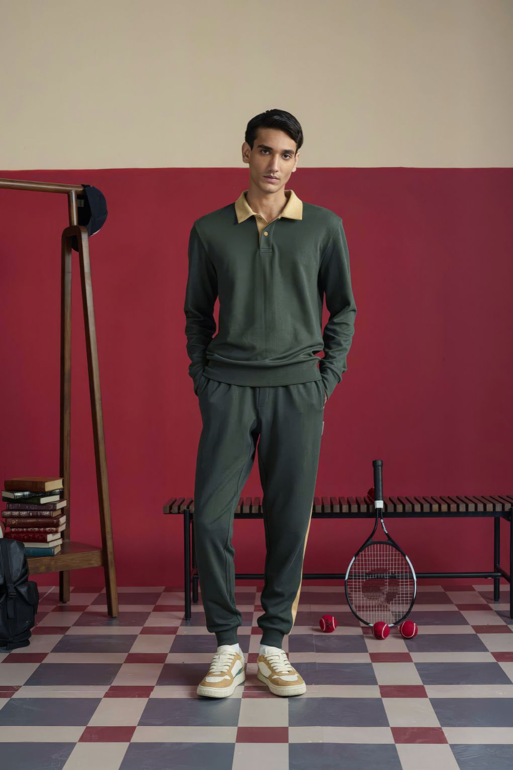 A sleek and sporty design crafted from soft, mid-weight knit fabric, these joggers feature a bold contrast side stripe in tan against a deep olive base. The elastic waistband ensures a comfortable fit, while ribbed cuffs at the ankles offer a modern tapered look. Perfect for casual outings, lounging, or athleisure style.