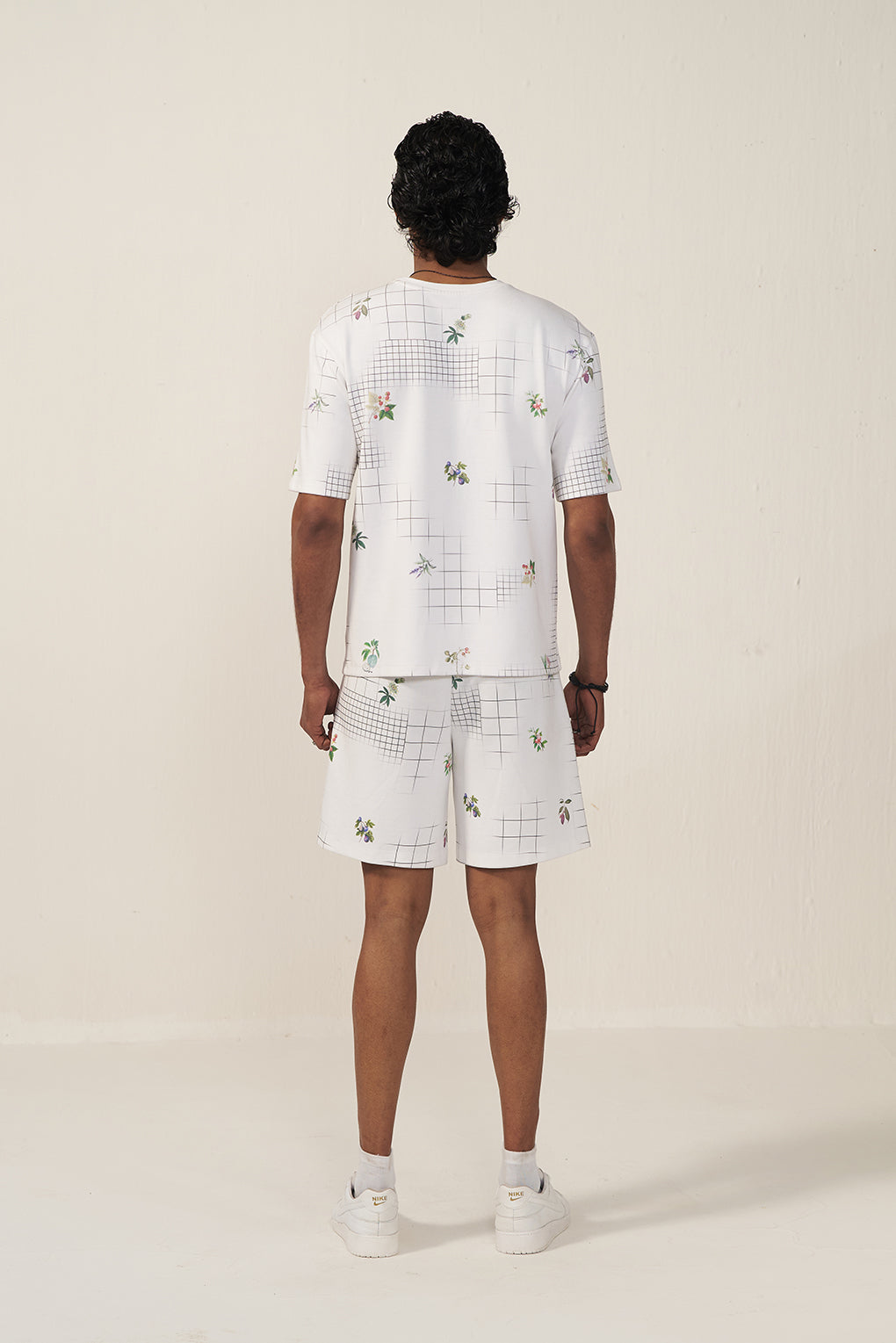 This white floral grid co-ord set balances minimal elegance with sporty charm. The soft floral accents keep it light and feminine, while the stripe detailing adds a dynamic touch. Perfect for casual outings, travel days, or elevated loungewear with effortless style