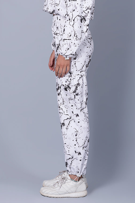 Our Cool Off White Co-ord Set in White is perfect for those chilly days or evenings. Made with a luxurious marble print in white, this hoodie is sure to turn heads. The relaxed fit and dropped shoulder give it a relaxed and comfortable look, while the adjustible toggle at the cuff add a touch of style. The loose fit makes it easy to layer over your favorite top or dress, and the full-sleeves keep you warm all day long. The hooded design with toggle elastic and pull-on closure make this co-ord set both practical and stylish.