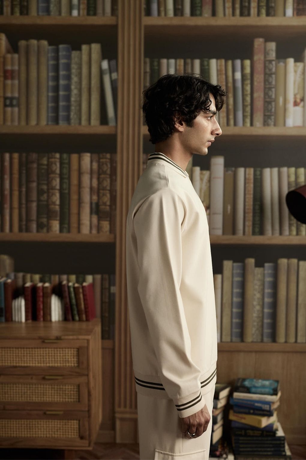 Crafted in luxurious premium fabric, this men’s loose-fit sweatshirt blends relaxed comfort with a sporty edge. Designed with a striped collar, cuffs, and bottom hem, it adds a touch of athletic-inspired detail to a timeless silhouette. Easy to wear and effortlessly versatile, it’s the perfect layering piece for casual days or elevated streetwear looks.