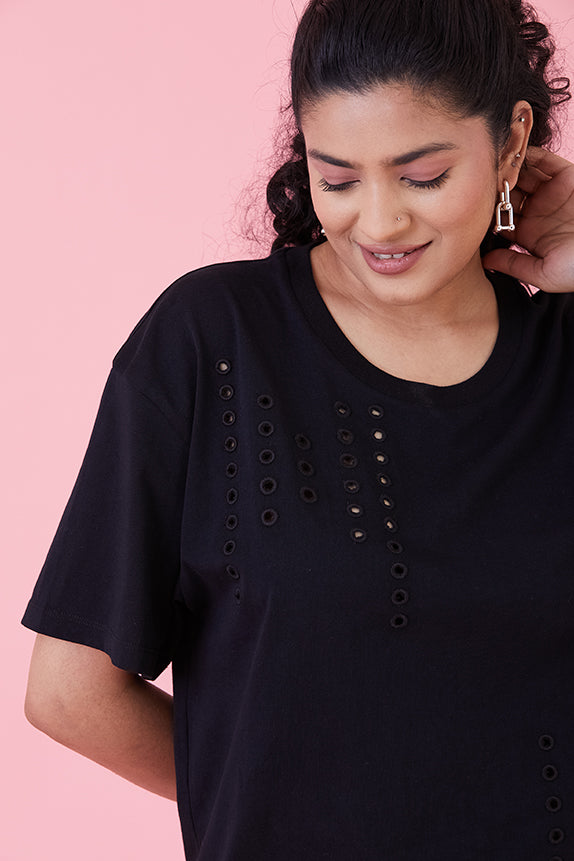 A combination of chic and casual, this eyelet top is made with 100% Cotton Single Jersey, a perfect fit for summer. Wear them with leggings, shorts, jean or tracks, it is sure to elevate your look whether lounging on the couch or creating an everyday look.