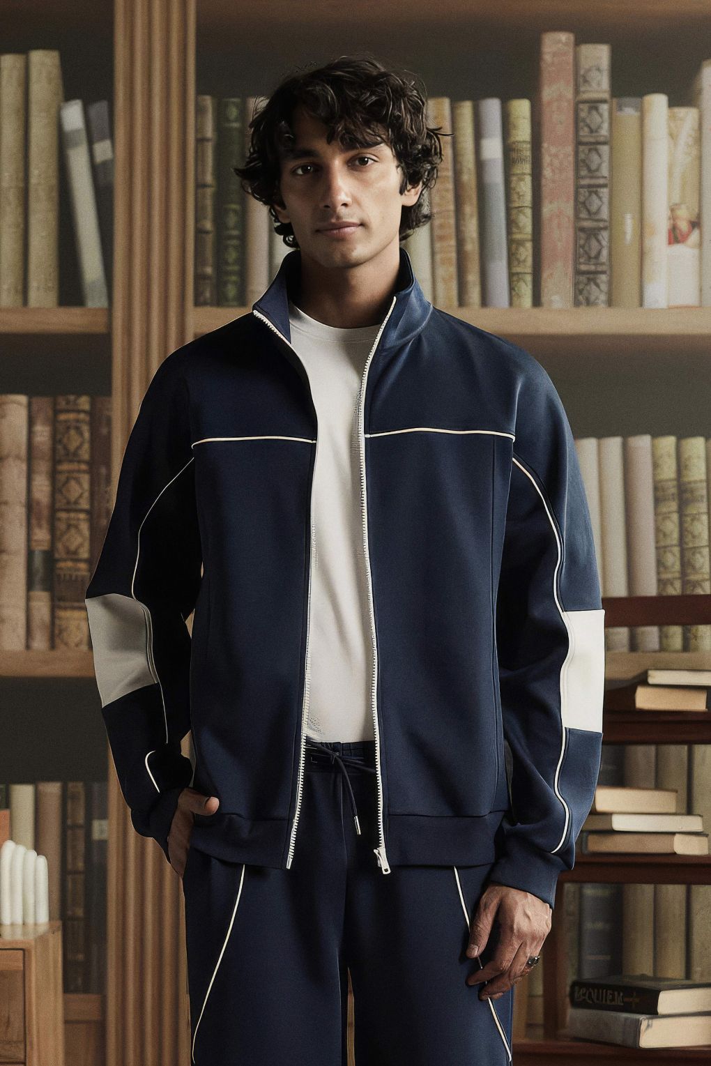 Engineered for movement and style, this men’s athleisure sweatshirt is crafted in premium performance fabric for all-day comfort. Designed with contrast piping details and sleeve panel accents, it brings a sleek, dynamic edge to a classic silhouette. Perfect for pairing with track pants or joggers, it’s an essential piece for both training and laid-back athleisure looks.