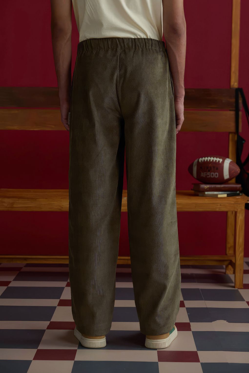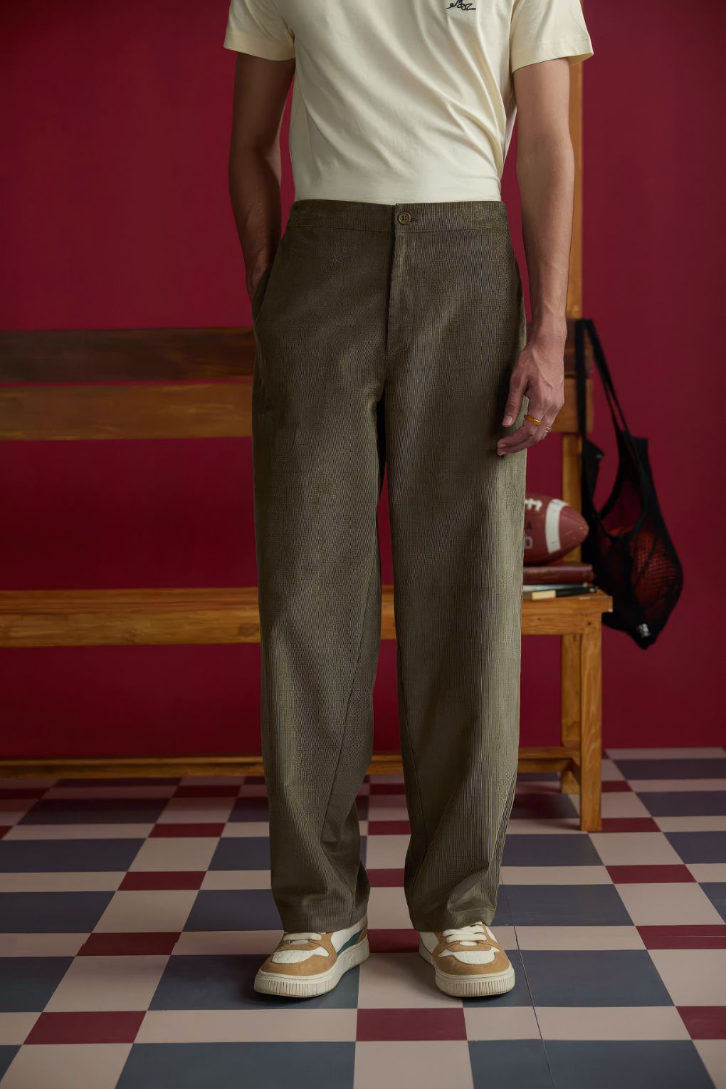Tailored in luxurious corduroy fabric, these men’s straight-leg pants combine refined texture with everyday ease. Designed with a fly zipper closure and a comfortable elasticated waistband at the back, they offer the perfect balance of structure and flexibility. The clean silhouette falls effortlessly from hip to hem, making them a versatile staple for both casual and elevated looks.