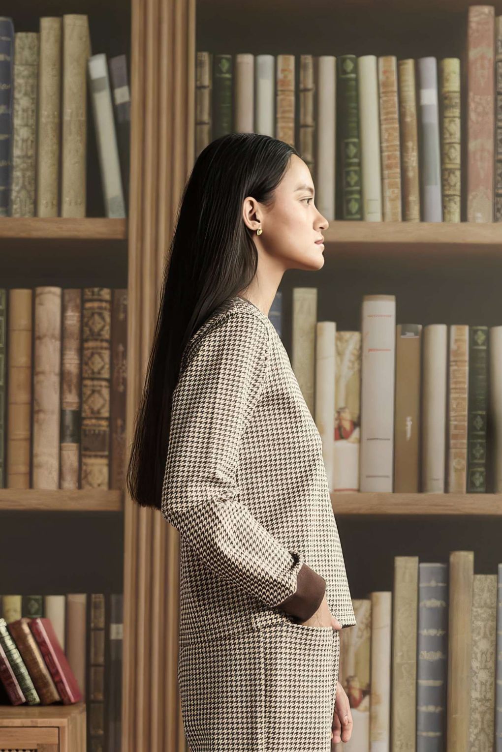 Crafted in luxurious premium fabric, this women’s top reimagines a classic pattern with modern ease. Designed in a mini houndstooth check, it features a contrast rib V-neckline and cuffs for a sporty yet refined edge. Lightweight yet cozy, it’s the perfect piece for layering on chilly days, pairing effortlessly with skirts, trousers, or denim for elevated casual style.