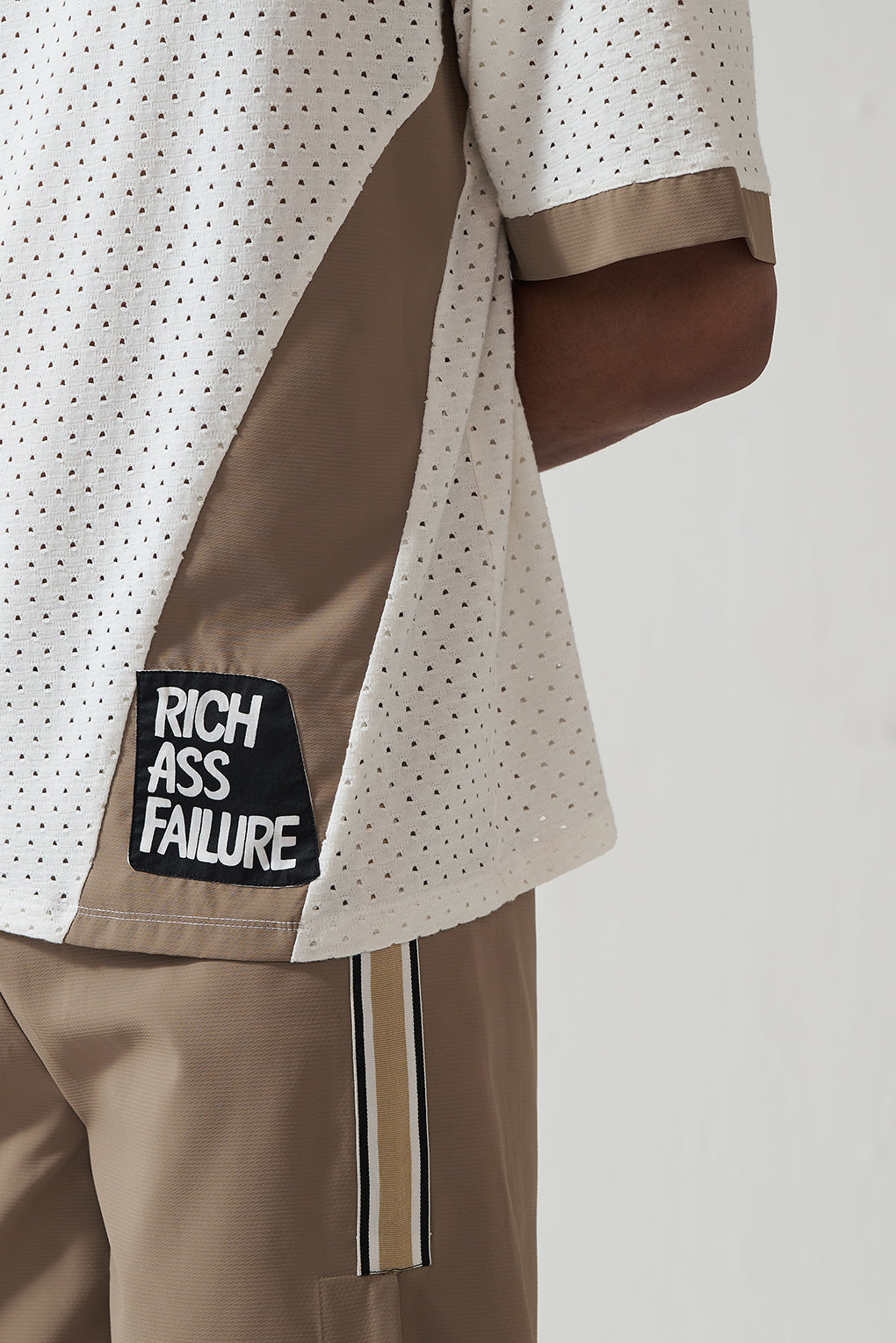 This white and sand co-ord set balances relaxed structure with modern street-style detailing. The textured oversized top pairs seamlessly with the striped wide shorts, creating a look that is minimal yet bold. Perfect for elevated casual wear, this set delivers comfort, edge, and effortless coordination in one statement ensemble.