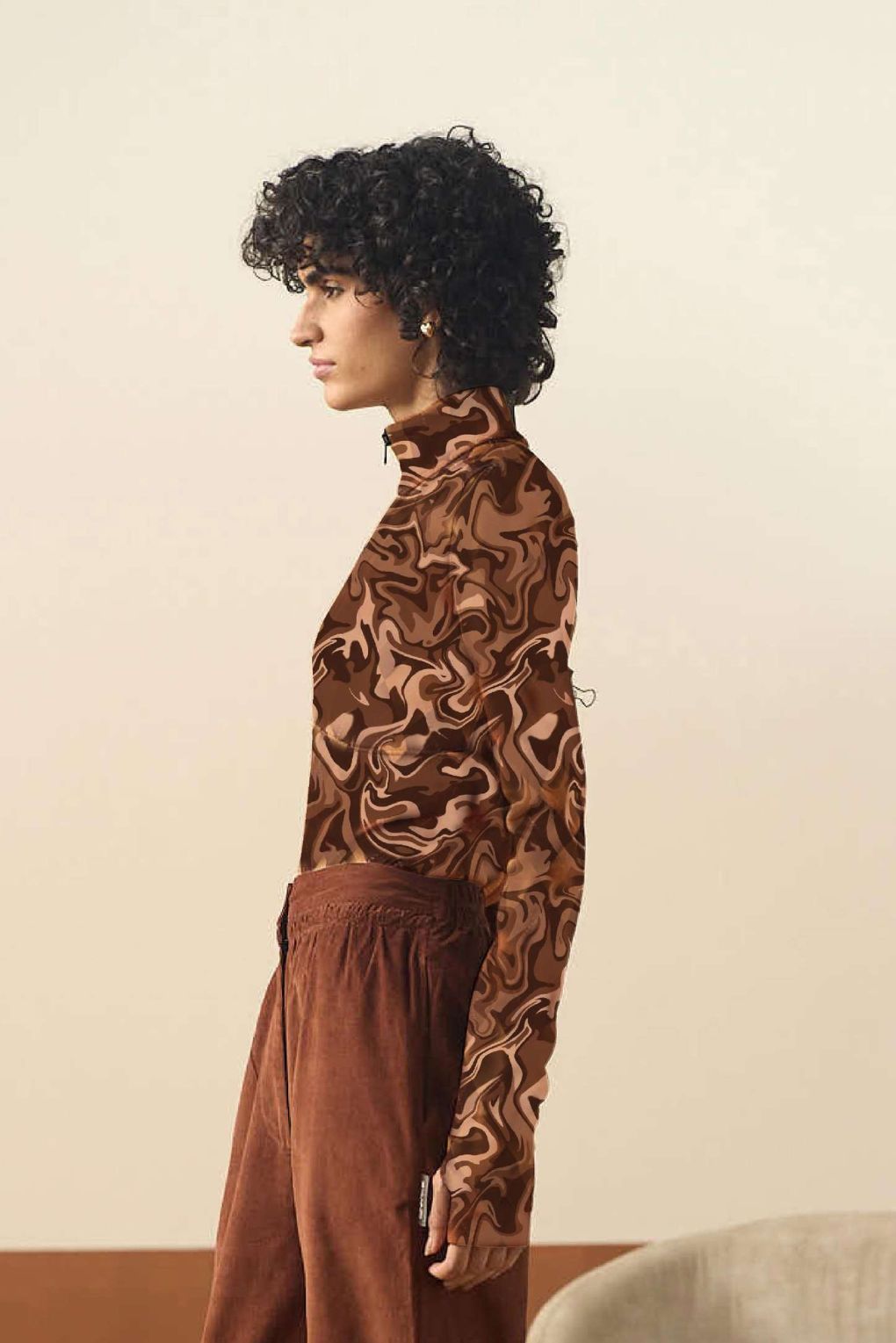 Effortlessly chic and perfectly paired, this set blends modern edge with timeless texture. The sleek, printed scuba bodysuit offers a flattering, form-fitting silhouette with sporty half-zip details, while the high-waisted corduroy pants bring warmth and vintage-inspired comfort with their soft, textured finish.