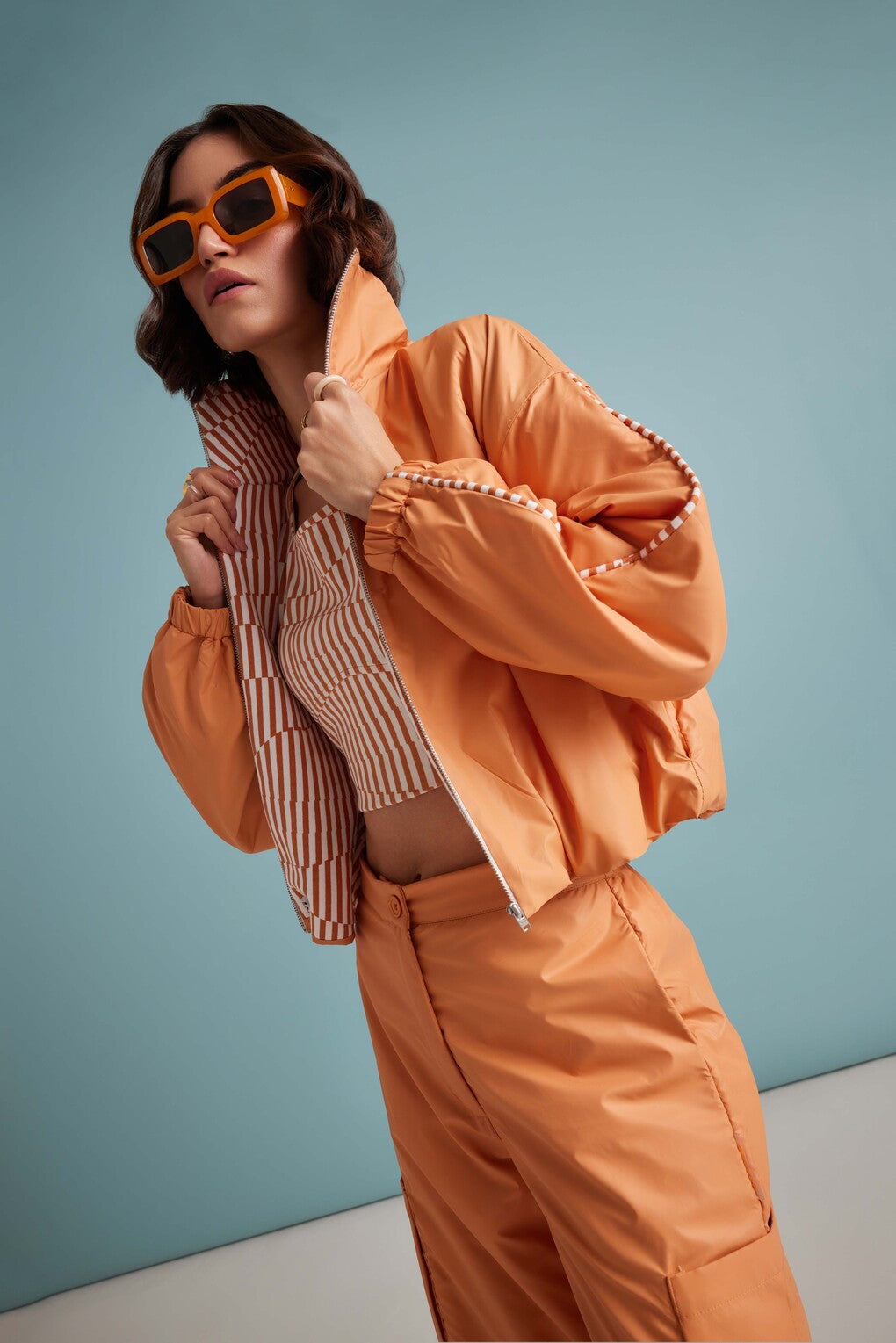 - Design Detail/Trim: button+ zipper + toggle elastic
