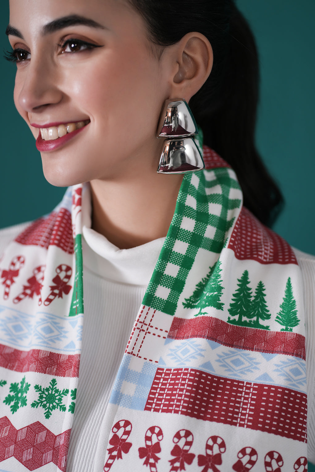 Wrap yourself in festive warmth with our Noel Comfy Scarf, a cheerful addition to your holiday wardrobe. Featuring a playful mix of Christmas motifs like ornaments, trees, socks, and checks, this scarf captures the spirit of the season perfectly. Lined with soft sherpa fleece on the interior, it ensures maximum warmth and comfort during chilly winter days. To enhance its festive charm, the scarf is finished with crochet contrast lace edging, adding a delicate and stylish detail that makes it truly stand out.
