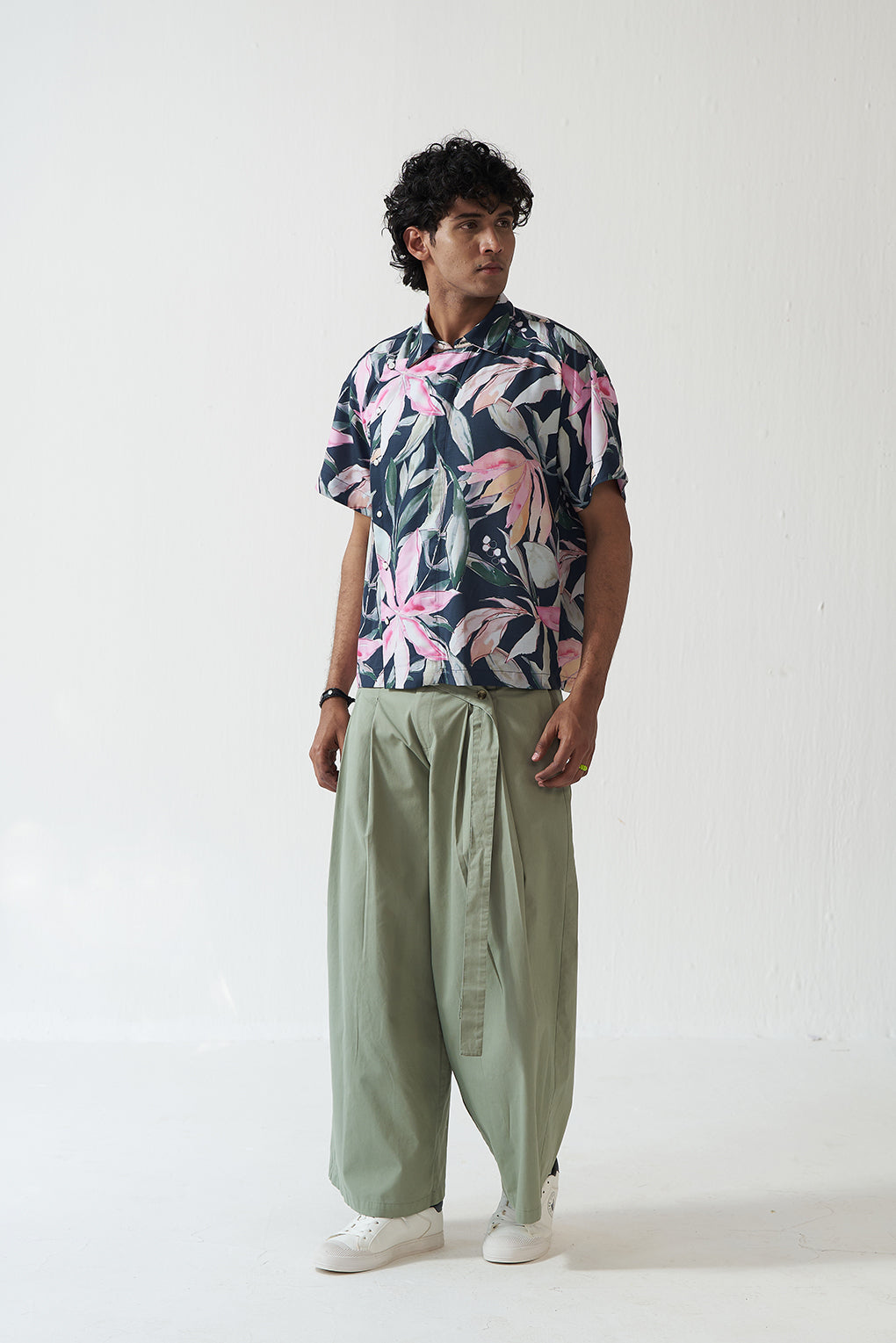 This navy blue tropical print co-ord set blends utility and sophistication with its structured shirt and tailored pants combination. The neutral palette creates a seamless, modern look that feels effortless yet statement-worthy—perfect for summer outings, travel edits, or relaxed luxe styling.