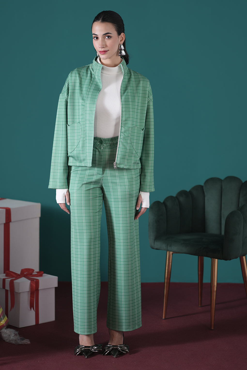 Step into the holiday season with style and comfort in our Cozy Christmas Plaid of Love Pants, featuring a festive broken green and white checkered pattern. Crafted from premium ponte fabric, these pants deliver the perfect combination of warmth and flexibility, making them ideal for cozy days at home or casual outings. Designed with a front fly button closure for a classic, comfortable fit, they also feature a straight-leg cut for added versatility. Pair them effortlessly with sweaters, jackets, or holiday tops for a coordinated and festive look.