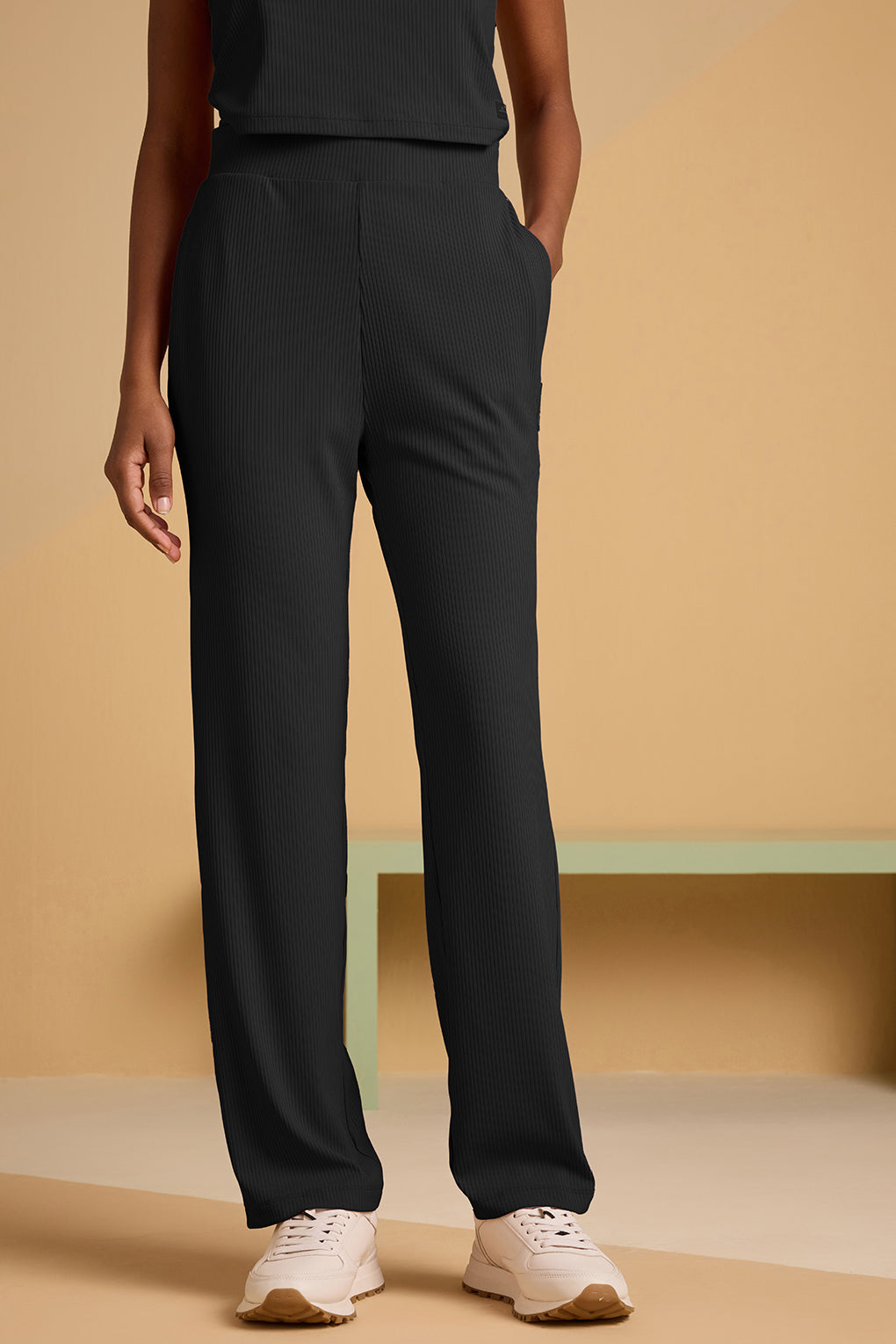 Pant: Fitted straight pants snug well to body shape. -