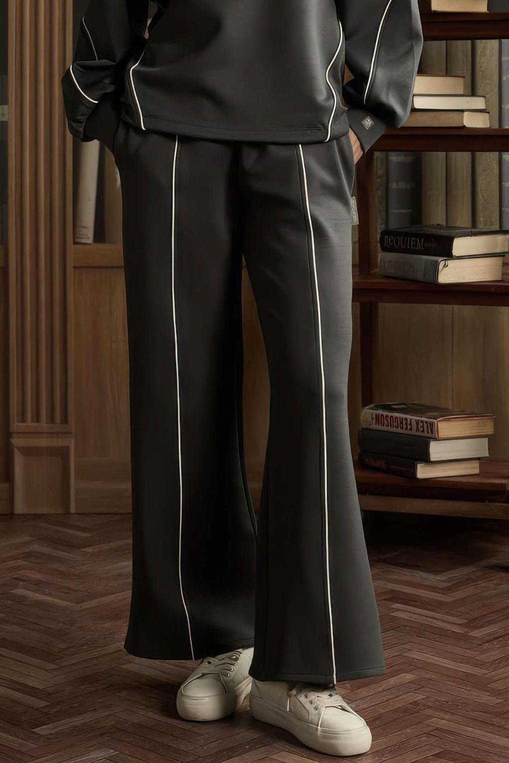 Crafted in luxurious premium scuba fabric, these women’s wide-leg pants combine structured style with effortless comfort. Designed with a contrast piping detail on the front, they add a sleek, sporty edge to the relaxed silhouette. The comfort elasticated waistband ensures ease of movement, making them perfect for day-to-evening wear or pairing with the matching hoodie for a coordinated statement look.