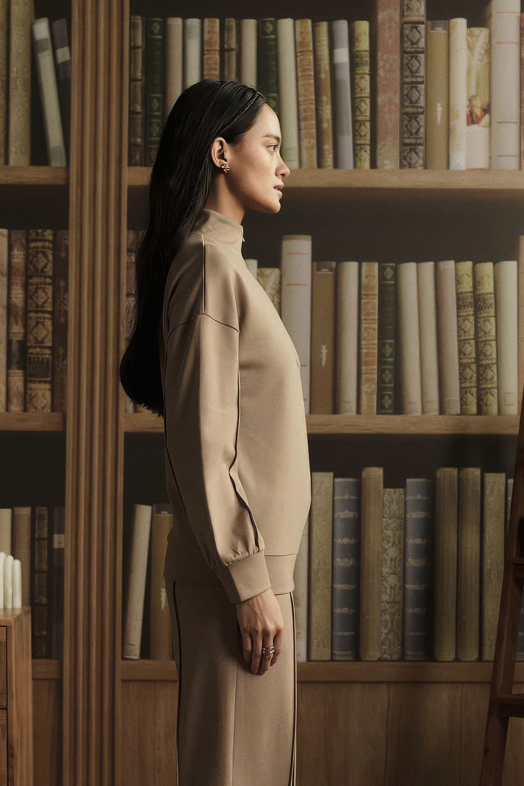 Stay effortlessly stylish and comfortable in this high neck half-zip sweatshirt, crafted from soft and durable interlock fabric. Designed with a relaxed silhouette, it’s perfect for layering or wearing on its own through the seasons.Whether you're lounging at home or heading out, this sweatshirt is your go-to piece for casual sophistication.