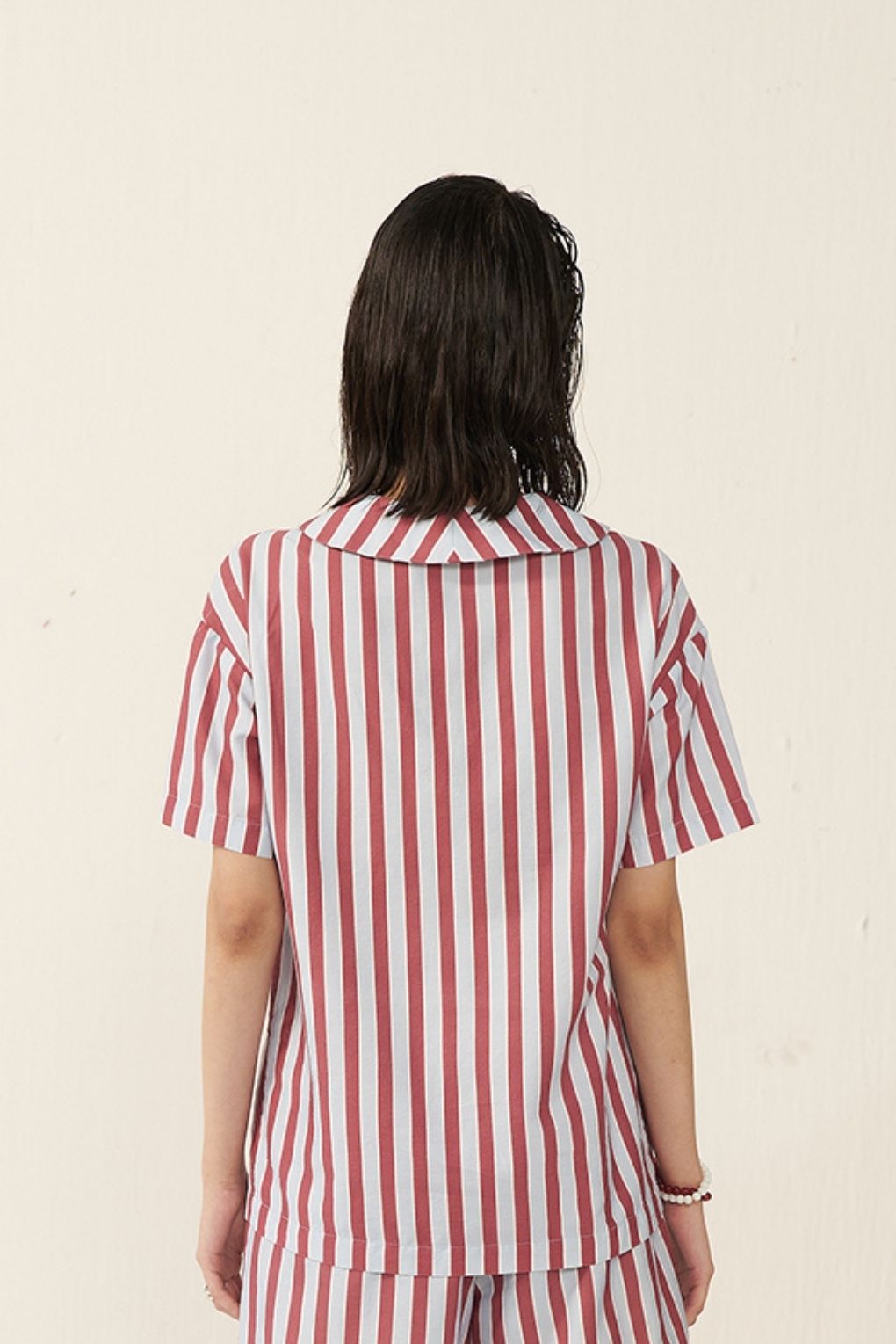 A summer wardrobe essential, this relaxed-fit shirt combines style and ultimate comfort. Crafted for softness and breathability, it’s perfect for nightwear, lounging, or casual daytime wear. The thick and thin stripe pattern adds a fresh, modern touch, making it effortlessly stylish.