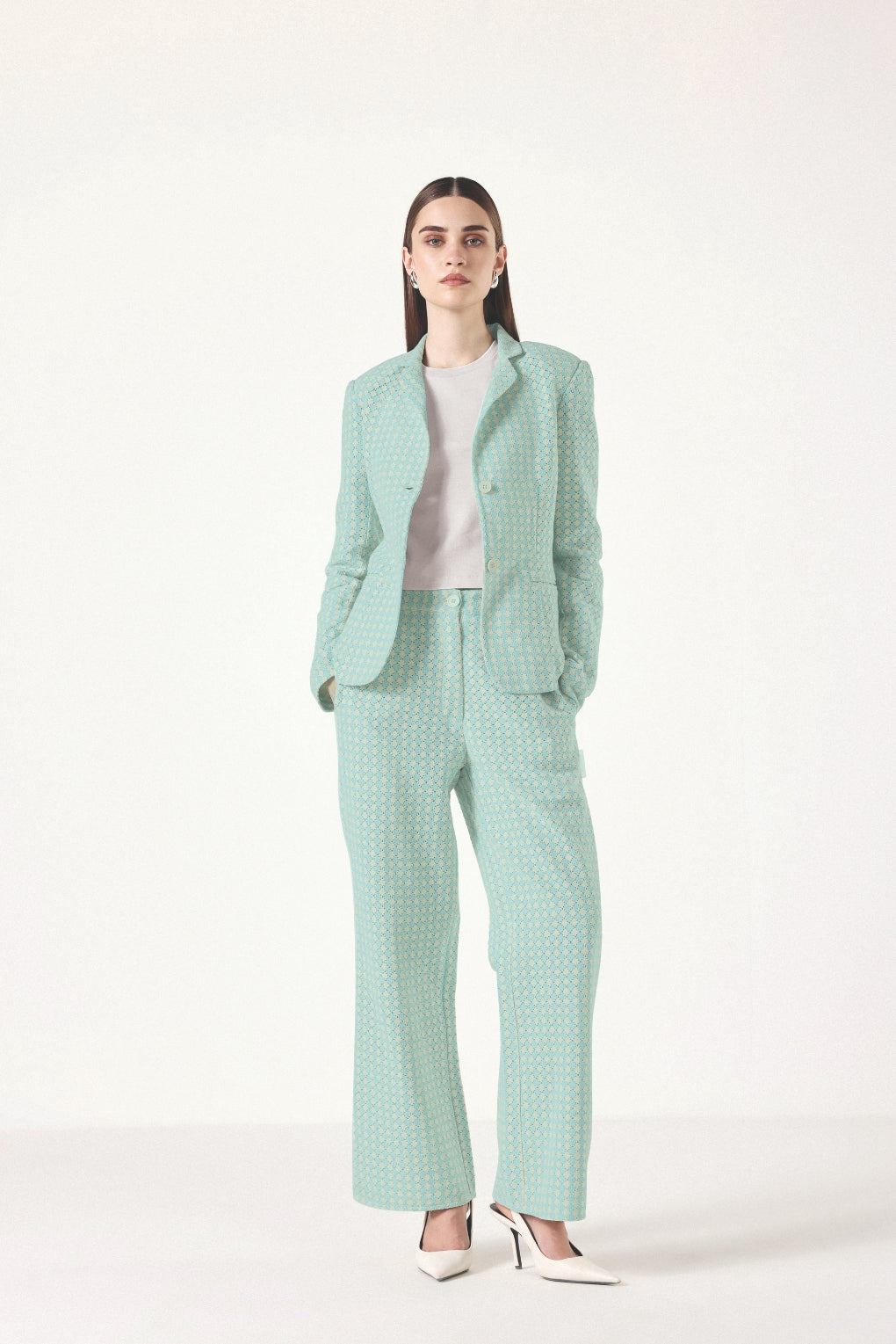 Introducing our Summer' Loom Crochet Co-ord Set—the ultimate summer ensemble that effortlessly blends elegance with breathable comfort. This sophisticated set features a regular-fit blazer crafted from delicate crochet fabric, offering a lightweight, airy feel with a refined silhouette. Paired seamlessly with wide-leg pants in matching crochet fabric, this set delivers a structured yet relaxed fit that flows beautifully with every step.