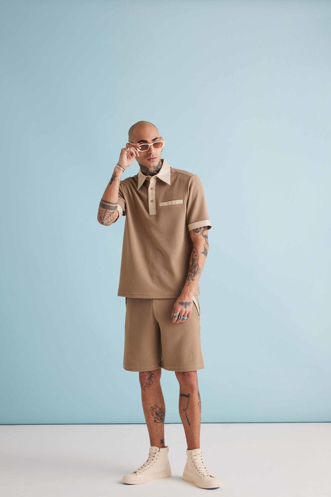 1. Relaxed knee length shorts with PVC detail at pockets - Model 6'2 is wearing M size