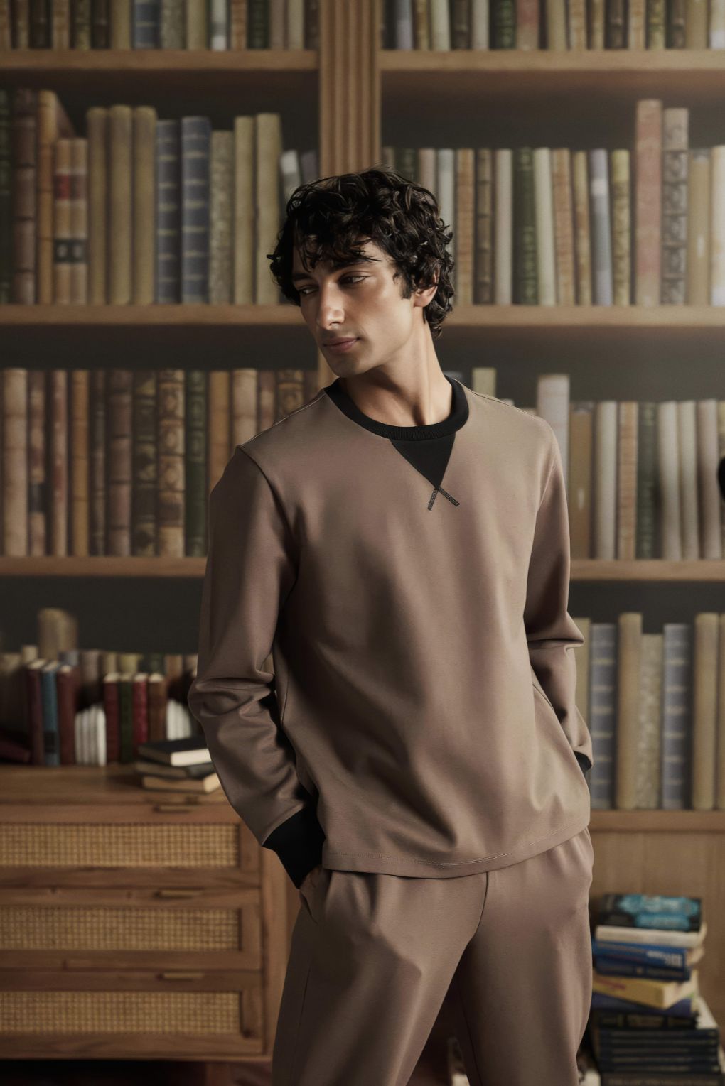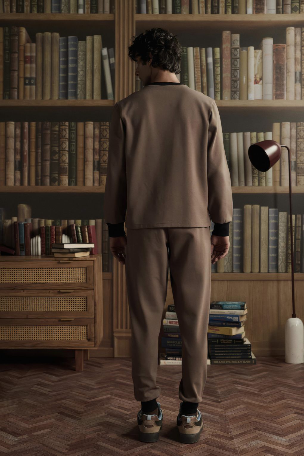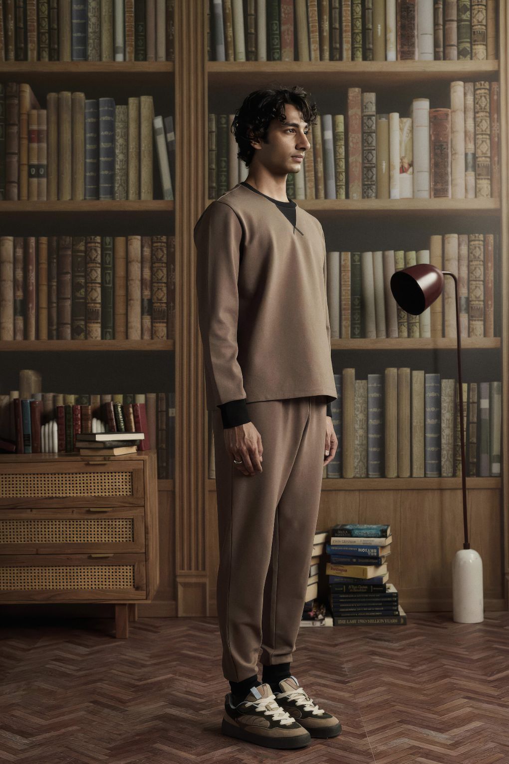 Elevate your casual wardrobe with this sleek sweatshirt and jogger set crafted from soft, mid-weight knit fabric. The sweatshirt features contrast ribbed cuffs and neckline with a subtle V-insert detail, paired with matching joggers that have a comfortable elastic waistband and cuffed ankles. Designed for effortless style and all-day comfort, this set is perfect for lounging, running errands, or casual outings.