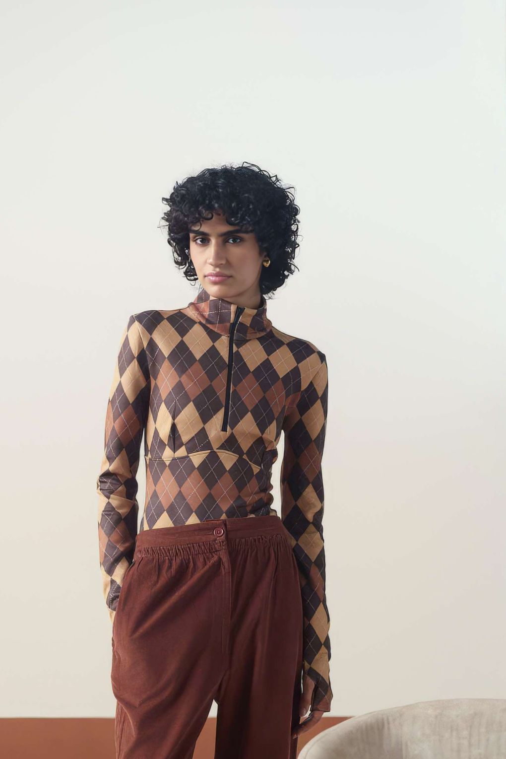 Effortlessly chic and perfectly paired, this set blends modern edge with timeless texture. The sleek, printed scuba bodysuit offers a flattering, form-fitting silhouette with sporty half-zip details, while the high-waisted corduroy pants bring warmth and vintage-inspired comfort with their soft, textured finish.