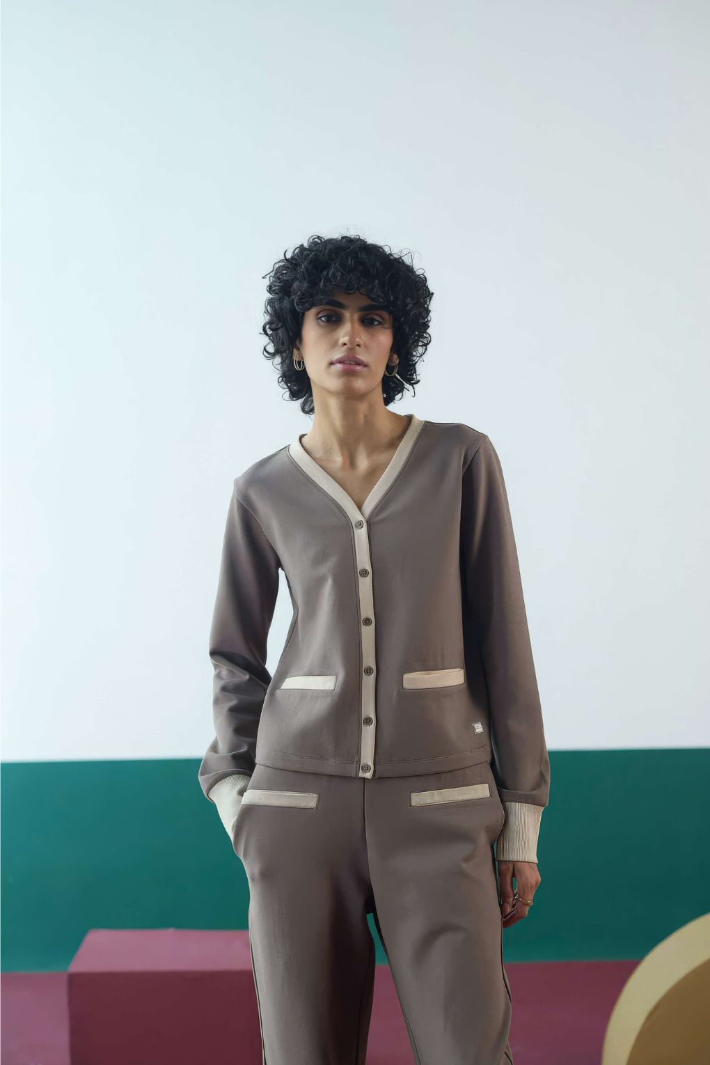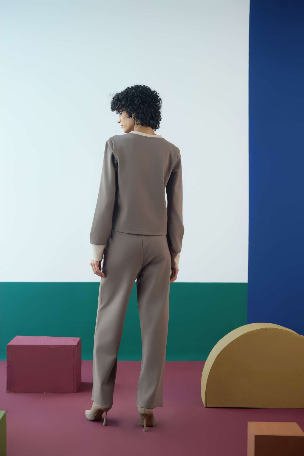 Effortlessly chic, this women’s co-ord set is crafted in luxurious premium fabric for style with comfort. The regular-fit top features a front button closure, highlighted with contrast rib cuffs on the sleeves and a contrast placket detail for a modern edge. It pairs seamlessly with straight-fit pants designed with an elasticated rib waistband, balancing structure with ease. Perfect for day wear