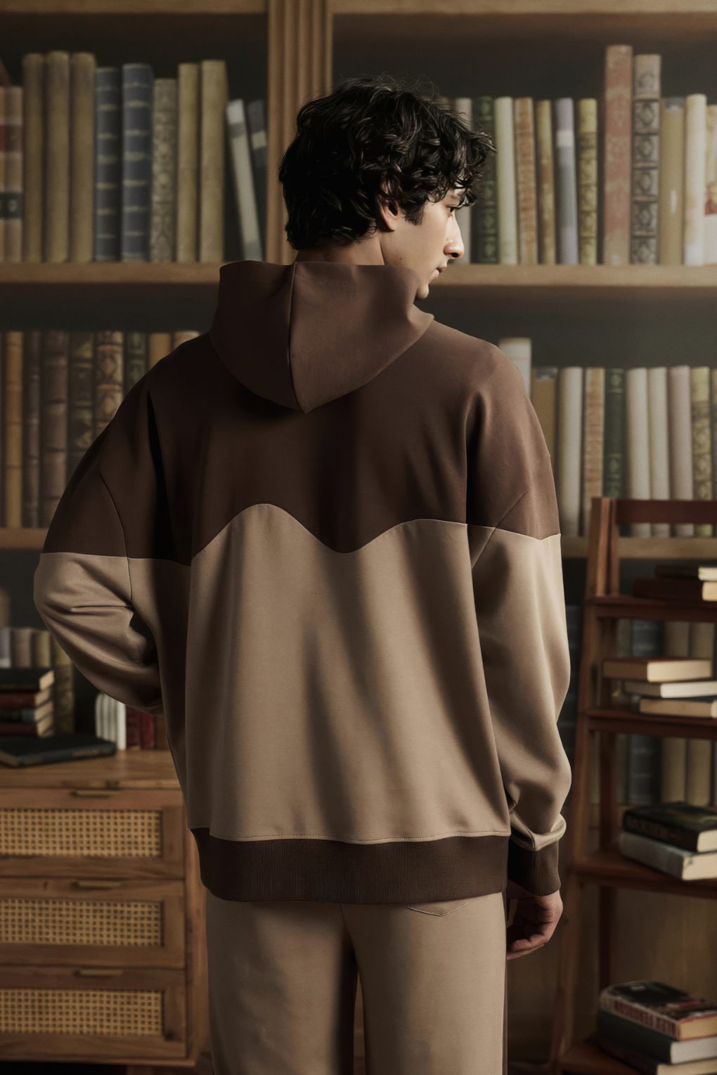 Stay cozy and stylish with this modern men’s color-block hoodie. Designed with a relaxed fit, it features a half-zip front for easy layering and adjustable comfort. The striking two-tone design in warm brown and beige adds a contemporary edge, while the soft fabric ensures all-day comfort. Finished with a roomy kangaroo pocket and ribbed cuffs and hem, this hoodie is perfect for casual outings or laid-back weekends.
