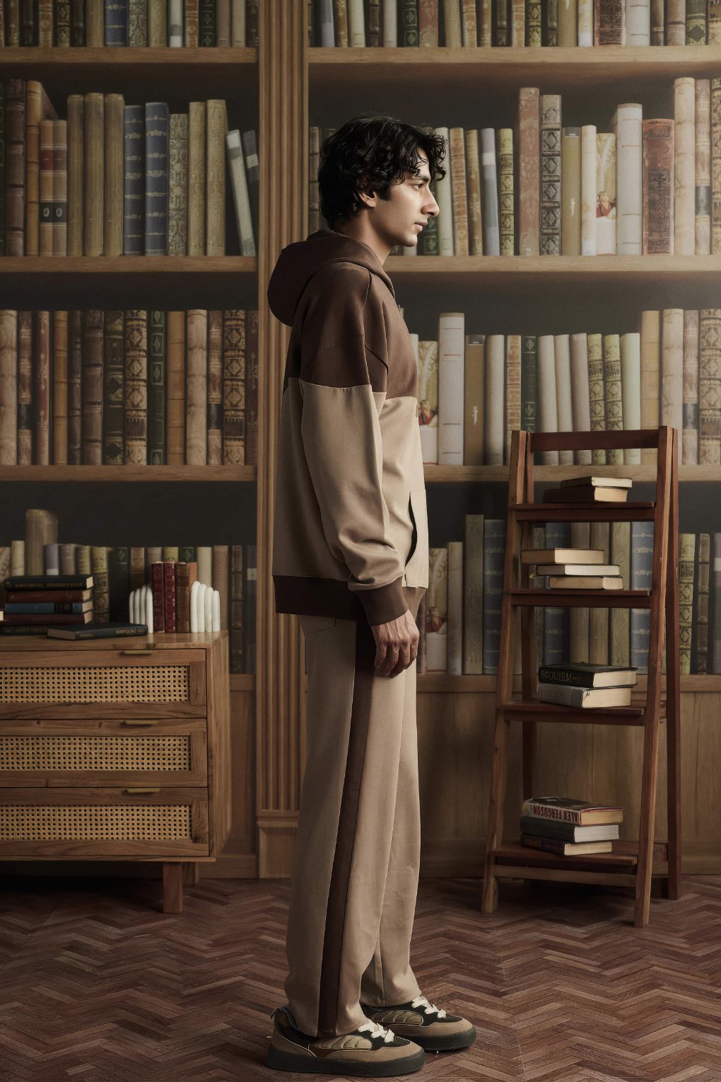 Elevate your casual style with this perfectly coordinated color-block hoodie and track pants set. Crafted from soft, breathable fabric, this set blends comfort with modern design for a relaxed yet polished look. The hoodie features a half-zip front and roomy kangaroo pocket, while the matching track pants offer a relaxed fit with an elastic waistband for easy movement. The warm brown and beige tones create a stylish contrast, making this set ideal for lounging, workouts, or casual outings.
